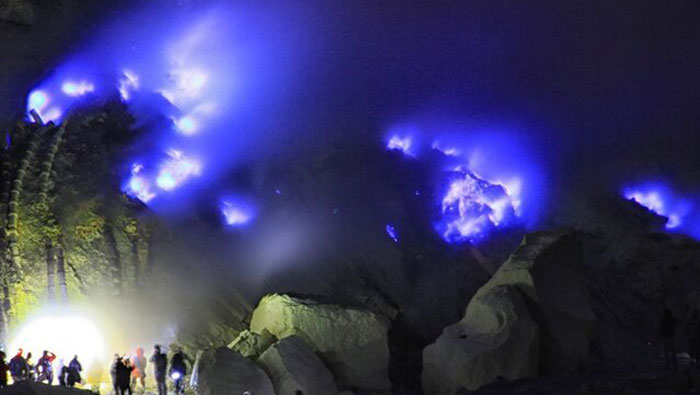 El fuego azul es un fenómeno natural que ocurre en el cráter Ijen y se puede ver solo cuando el cielo está oscuro (desde las seis de la tarde hasta las 4 de la mañana, este fenómeno natural ocurre debido a la quema de azufre causada por el calor geotérmico). Muccos recursos dicen que hay 2 fuegos azules en el mundo pero no hay un recurso definitivo al respecto, me atrevo a decir que solo hay un fuego azul en el mundo, ijen Crater